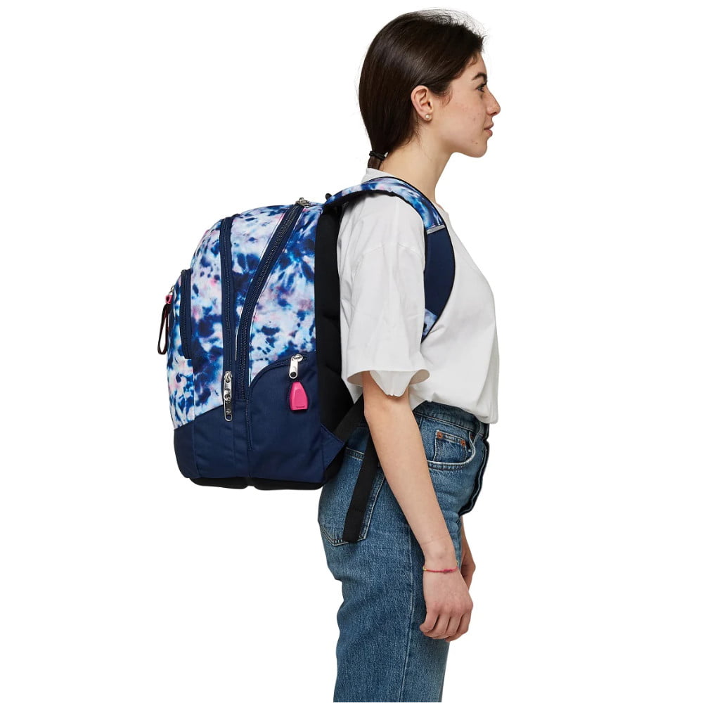 In questo zaino Seven Cloudy Shapes c'è tutto lo spazio che ti serve! Grazie alle tante tasche e ai suoi 30 litri di capacità non dovrai più faticare per organizzare il materiale. Ogni cosa ha il suo posto: tasca esterna per borraccia, tasca interna porta tablet, tasca organizzata per gli accessori più piccoli e c'è perfino la tasca segreta dove mettere le cose più di valore (come il portafoglio e il cellulare). Lo spazio non manca e nemmeno la resistenza ed ergonomicità che grazie alle imbottiture di schienale e fondo è super comodo sulle spalle. In più in questo modello hai anche l'Usb Plug che, se collegato a un powerbank, ti permette di caricare il tuo telefono mentre vai a scuola!