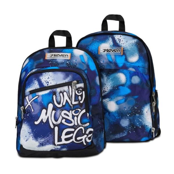 Questo è lo zaino perfetto per un ragazzo che, oltre alla scuola, ha tanti impegni. La possibilità di avere due zaini in uno ti permette di avere uno zainetto più piccolo per il tempo libero e quello grande per la scuola e se non basta... puoi unirli e avere un maxi zaino super spazioso! Colorazione Retrocolor a tema graffiti e street art con una stampa che ricorda schizzi di colore sui toni del blu, bianco e nero.